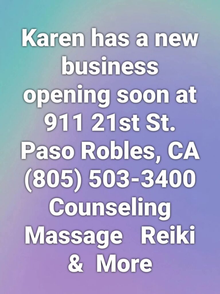 services are now available at karen’s new location at 911 21st st. in paso robles, ca. lapis & lotus center of slo has closed.